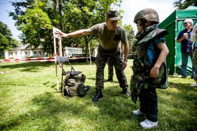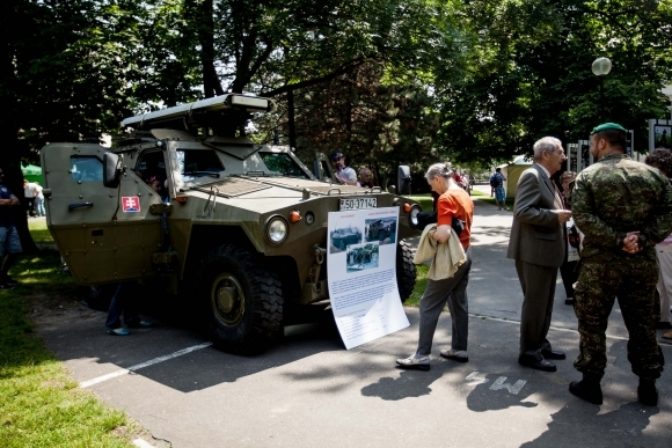 Návštevníci si prezerajú vojenskú techniku počas Dňa otvorených dverí na Úrade vlády SR. Bratislava, 7. jún 2014. Foto: SITA/Jozef Jakubčo