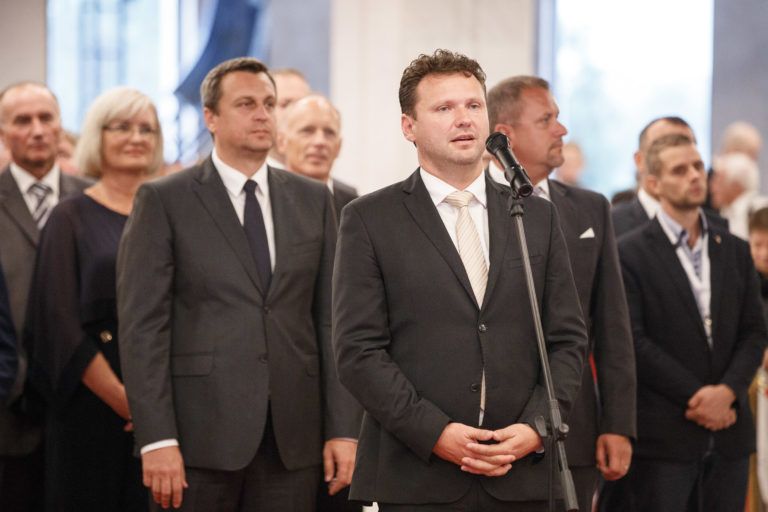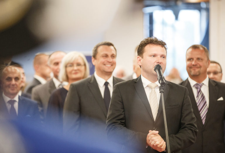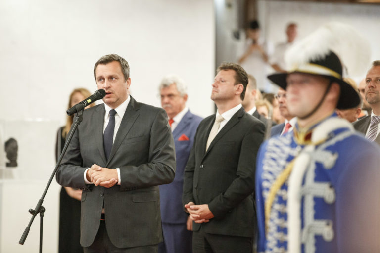 Predseda Poslaneckej snemovne ČR Radek Vondráček (v popredí) v príhovore počas Dňa otvorených dverí (DOD) v Národnej rade SR pri príležitosti osláv 26. výročia prijatia Ústavy SR. Bratislava, 1. september 2018. Foto: SITA/Branislav Bibel