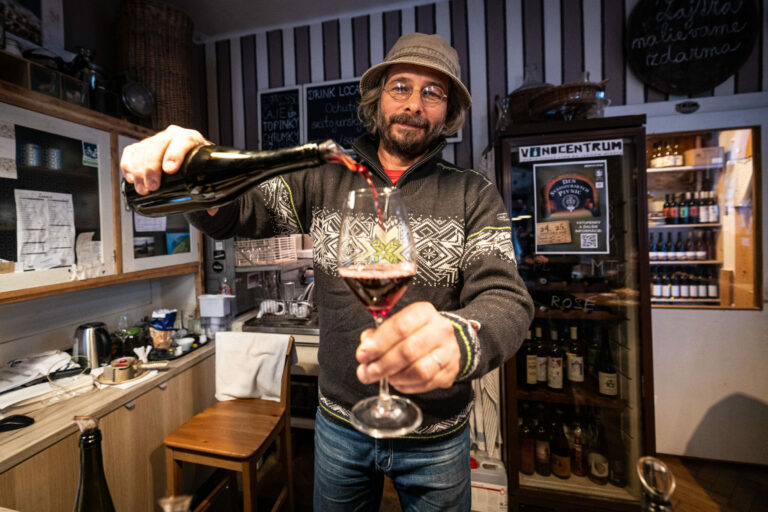 Ochutnávka vína z vinárstva Pavelka vo Farskej pivnici v Pezinku počas 24. ročníka najväčšieho vinohradnícko - vinárskeho podujatia Deň otvorených pivníc 2024 v Malokarpatskom regióne od Bratislavy po Trnavu. Pezinok, 16. november 2024. Foto: SITA/Jana Birošová.