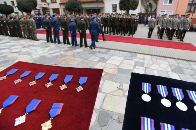 Pohľad na ocenenia pre vojakov počas osláv Dňa Ozbrojených síl SR pri príležitosti 25. výročia vzniku Slovenskej republiky. Brezová pod Bradlom, okr. Myjava, 22. september 2018. Foto: SITA/Martin Medňanský