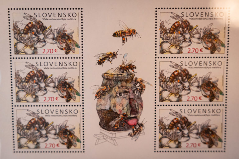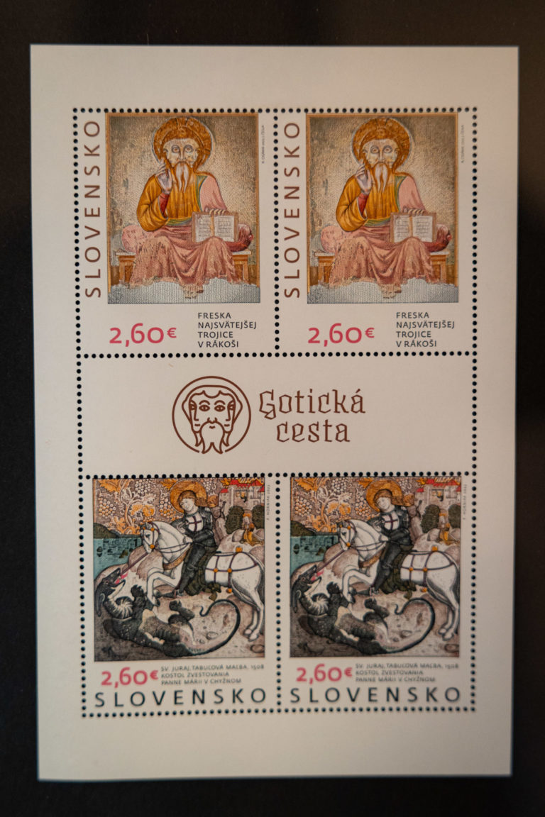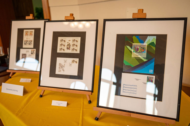Ocenené poštové známky počas podujatia Deň poštovej známky a filatelie spojeného s udeľovaním ocenení autorom najkrajších slovenských poštových známok za rok 2023. Bratislava, 18. december 2023. Foto: SITA/Jana Birošová