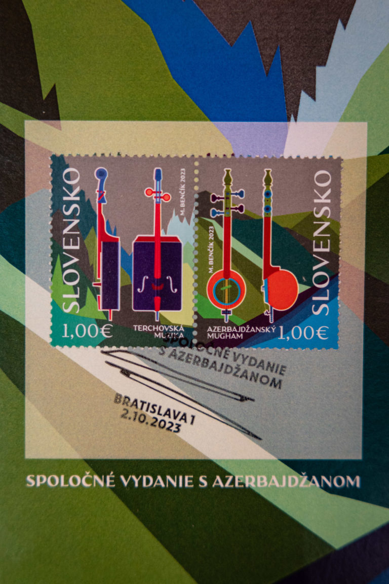 Ocenená poštová známka počas podujatia Deň poštovej známky a filatelie spojeného s udeľovaním ocenení autorom najkrajších slovenských poštových známok za rok 2023. Bratislava, 18. december 2023. Foto: SITA/Jana Birošová