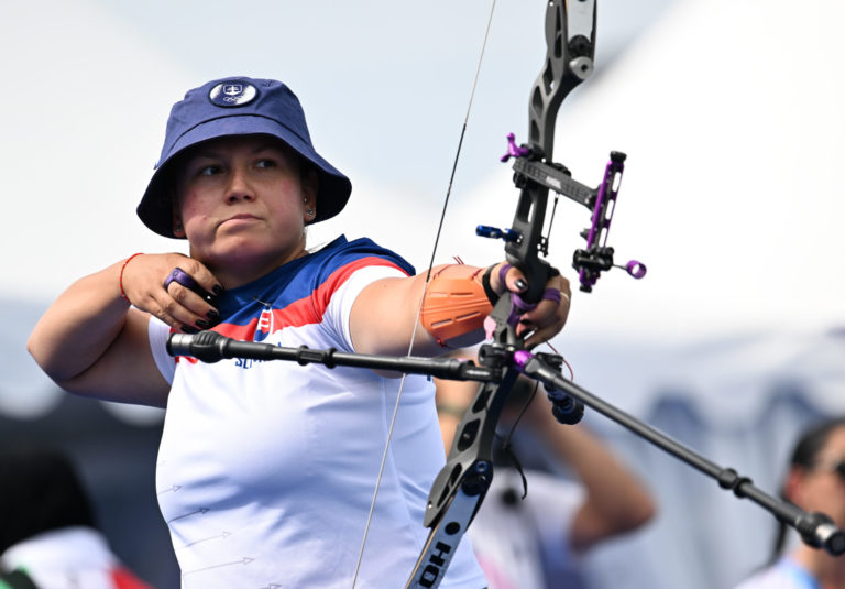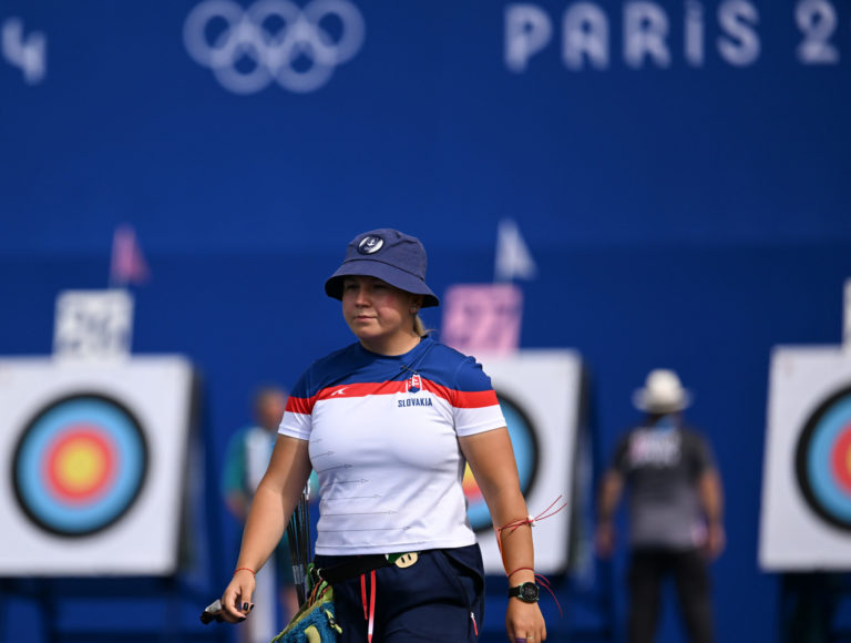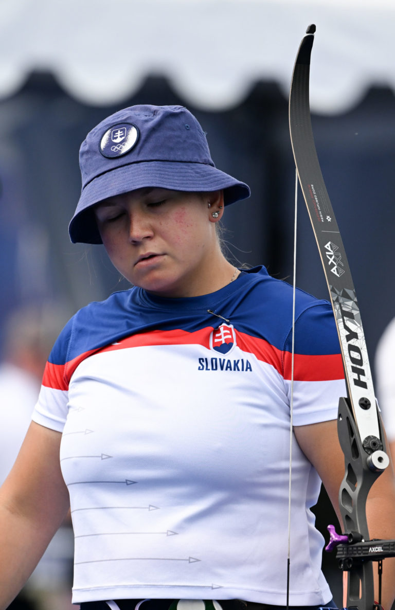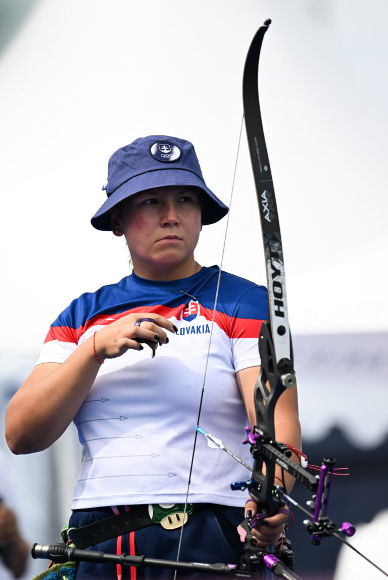 Slovenská lukostrelkyňa Denisa Baránková počas kvalifikácie súťaže lukostreľby žien pred začiatkom XXXIII. letných olympijských hier 2024 v Paríži. Paríž, 25. júl 2024. Foto: SITA/Martin Medňanský.