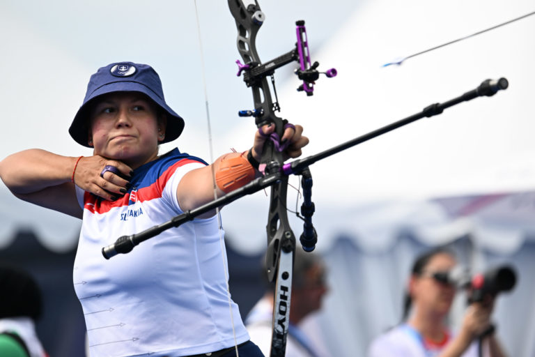 Slovenská lukostrelkyňa Denisa Baránková počas kvalifikácie žien v olympijskom luku pred začiatkom XXXIII. olympijských hier 2024 v Paríži. Paríž, 25. júl 2024. Foto: SITA/Martin Medňanský.