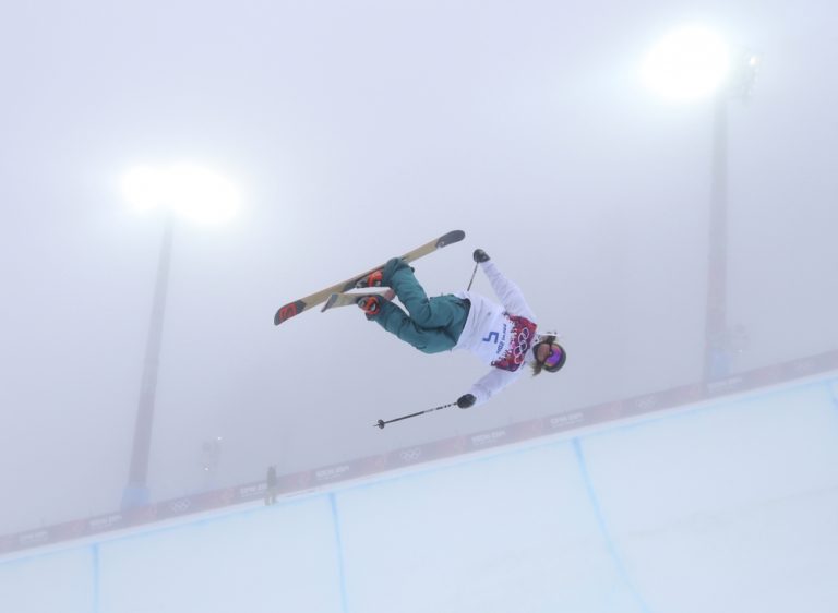 Američan Angeli Vanlaanen počas pondelňajšieho tréningu akrobatických lyžiarov. Foto: SITA/AP