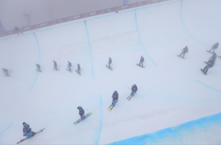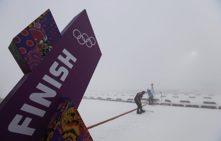 Pre hmlu v biatlonovom komplexe Laura museli niekoľkokrát presunúť mužské preteky s hromadným štartom. Foto: SITA/AP