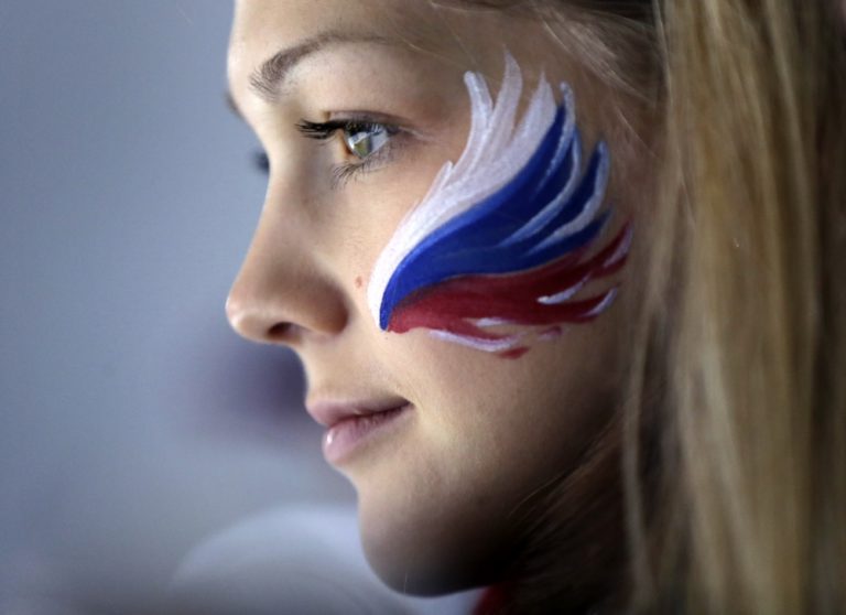 Ruská fanúšička počas zápasu curlingového turnaja na olympiáde v Soči. Foto: SITA/AP