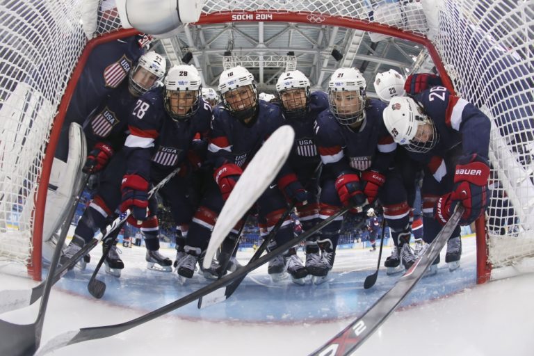 Americké hokejové reprezentantky pred semifinálovým zápasom olympijského turnaja proti Švédkam. Foto: SITA/AP