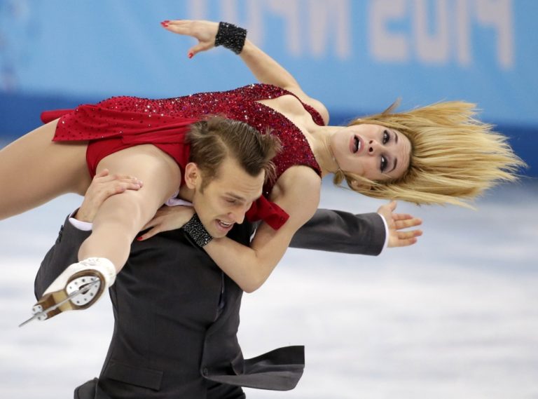 Azerbajdžanskí reprezentanti Julia Zlobinová a Alexej Sitnikov počas súťaže vo voľných tancoch na ľade. Foto: SITA/AP