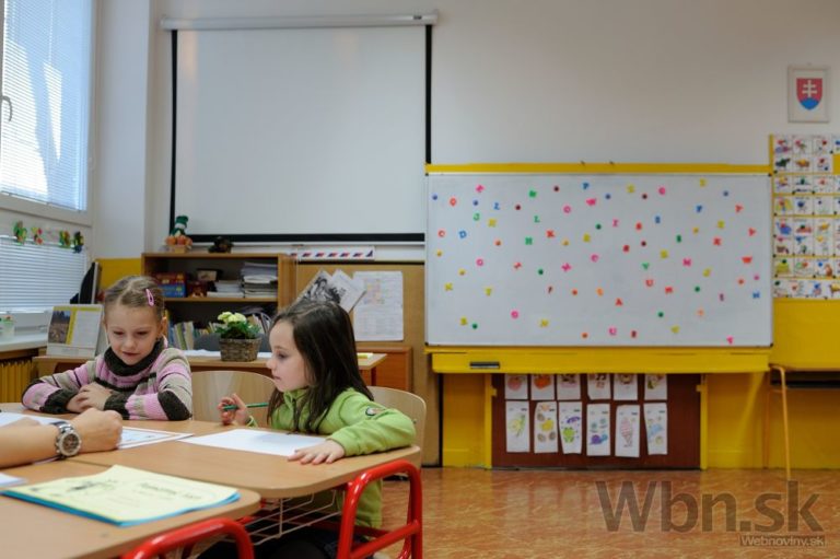 Interiér triedy počas zápisu prvákov na ZŠ Pavla Marcelyho v Bratislave. Bratislava, 13. február 2015. Foto: SITA/Robert Tappert