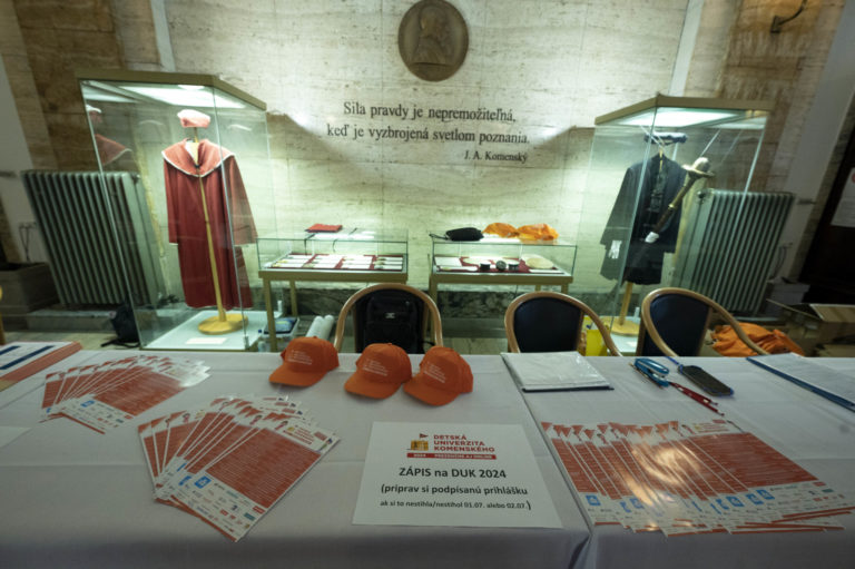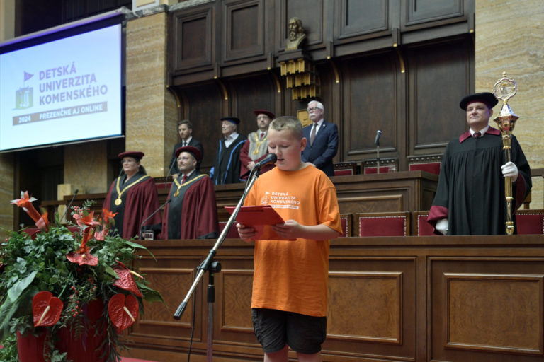 Slávnostná imatrikulácia študentov 22. ročníka Detskej Univerzity Komenského (UK) 2024 v Aule UK. Bratislava, 3. júl 2024. Foto: SITA/Milan Illík