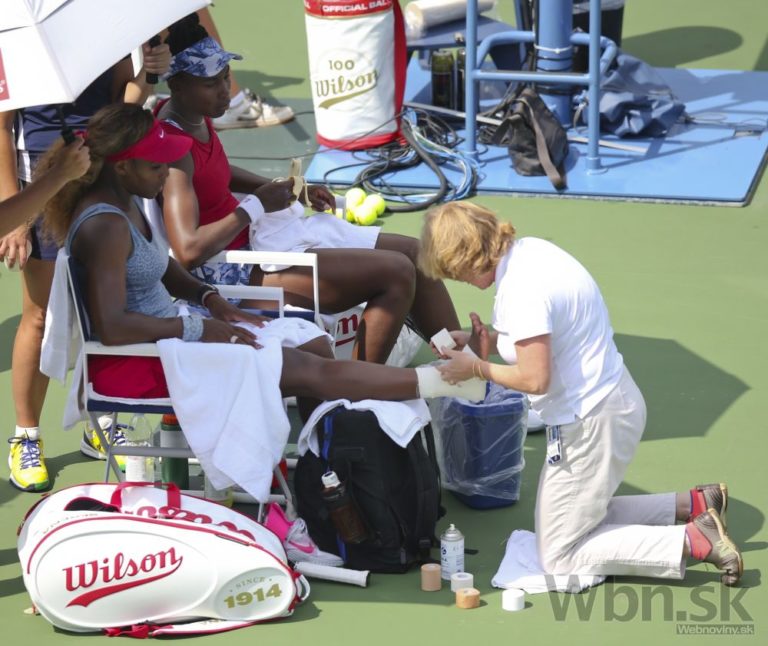 Serena a Venus Williamsové prehrali vo štvrťfinále štvorhry US Open s Ruskami Jekaterinou Makarovovou a Jelenou Vesninovou 6:7 (5), 4:6. Foto: SITA/AP