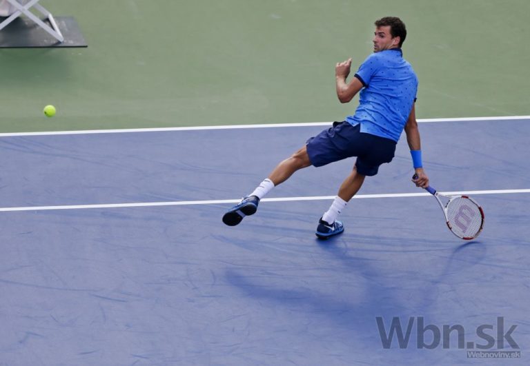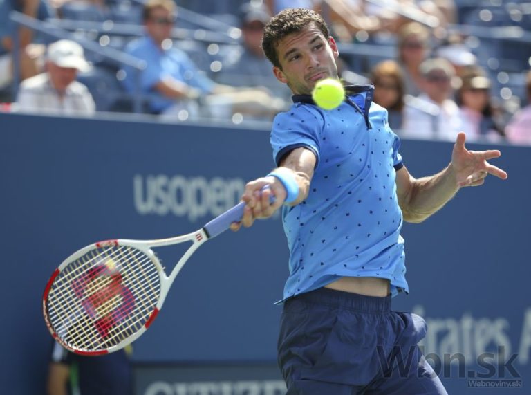 Bulharský tenista Grigor Dimitrov počas osemfinálového zápasu na US Open, v ktorom prehral s Francúzom Gaelom Monfilsom 5:7, 6:7, 5:7. Foto: SITA/AP