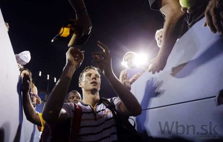 Český tenista Tomáš Berdych dáva autogramy fanúšikom po porážke Rakúšana Dominica Thiema. Foto: SITA/AP