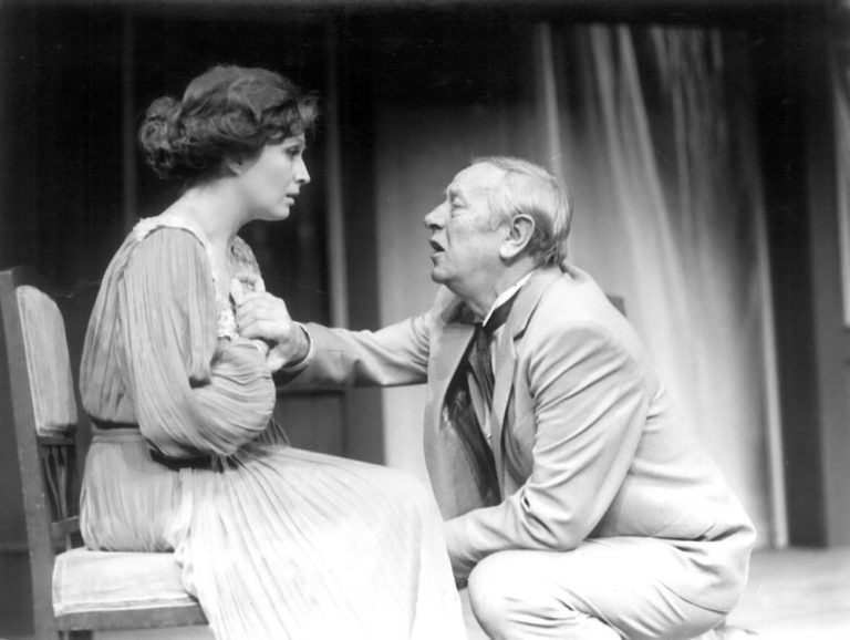 Zľava: Herci Emília Vášáryová (Ellide Wanglová) a Karol Machata (Doktor Wangl) v hre Pani z mora (1983). Foto: SITA/Jozef Vavro
