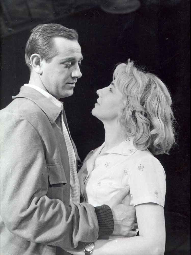 Herec Karol Machata (Viktor) a Mária Kráľovičová (Vaľa) v hre Príhoda na brehu rieky (1960). Foto: SITA/SND