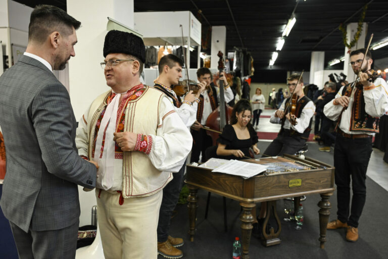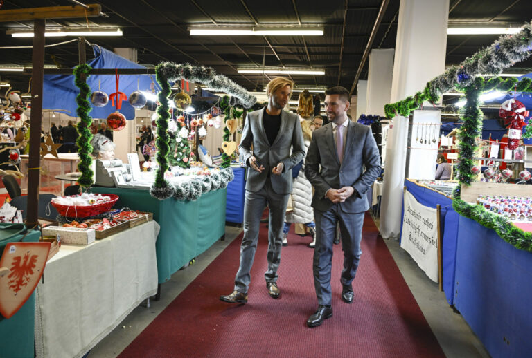 Minister pôdohospodárstva a rozvoja vidieka (MPRV) SR Richard Takáč (vpravo) počas návštevy ministra pôdohospodárstva a rozvoja vidieka SR Richarda Takáča v stánku MPRV SR v rámci vianočného veľtrhu Dni Vianoc v Inchebe. Bratislava, 13. december 2024. Foto: SITA/Milan Illík