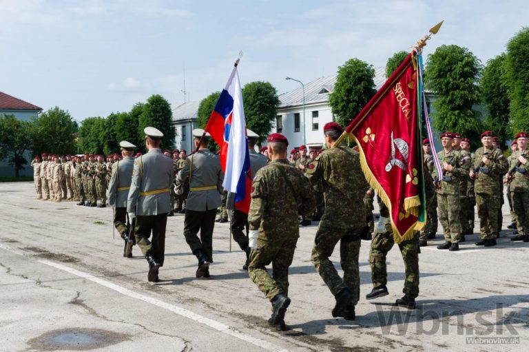 Slávnostný pochod počas slávnostného nástupu príslušníkov 5. pluku špeciálneho určenia odchádzajúcich plniť úlohy do operácie ISAF v Afganistane. Žilina, 6. jún 2014. Foto: SITA/Milo Fabian