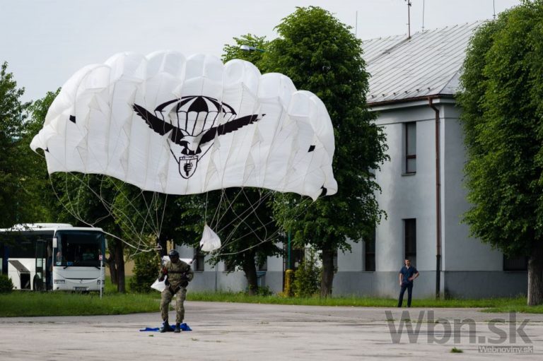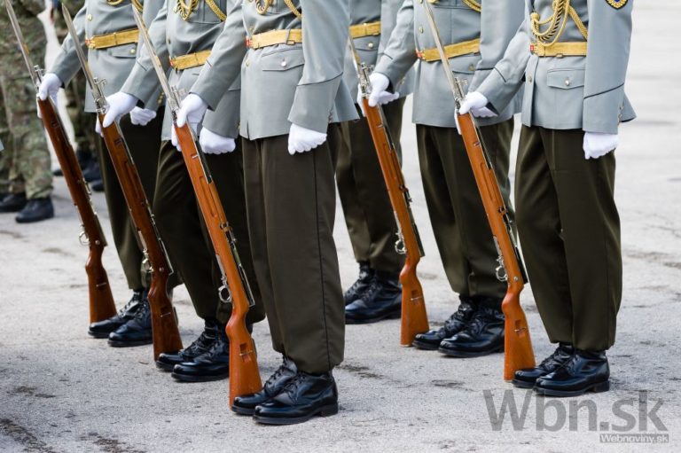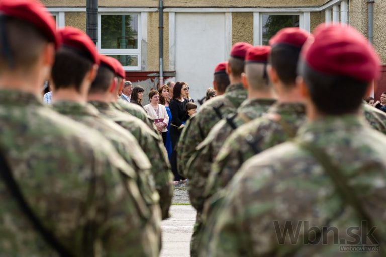 V pozadí rodinní príslušníci počas slávnostného nástupu príslušníkov 5. pluku špeciálneho určenia odchádzajúcich plniť úlohy do operácie ISAF v Afganistane. Žilina, 6. jún 2014. Foto: SITA/Milo Fabian