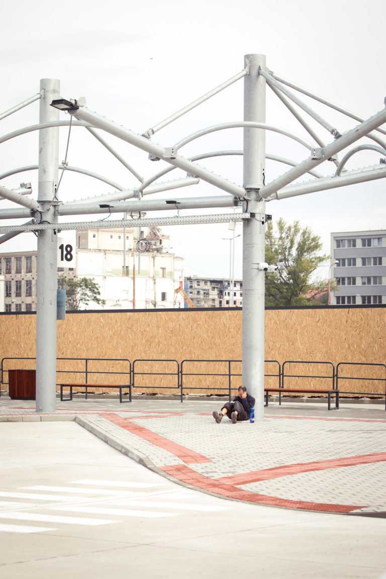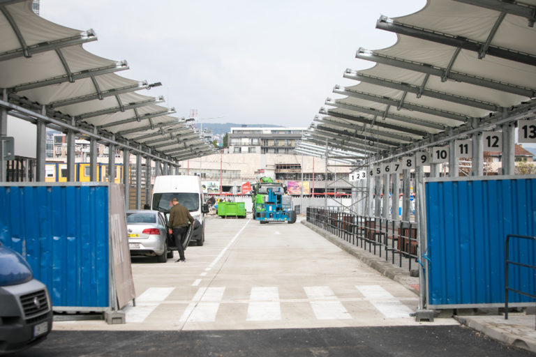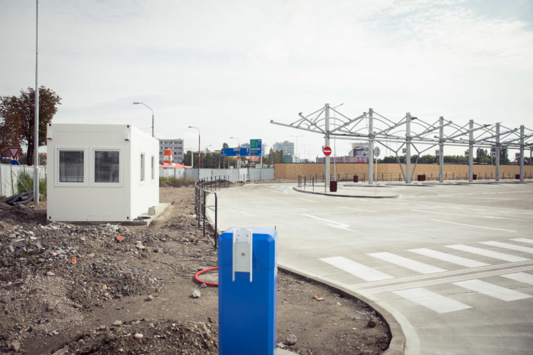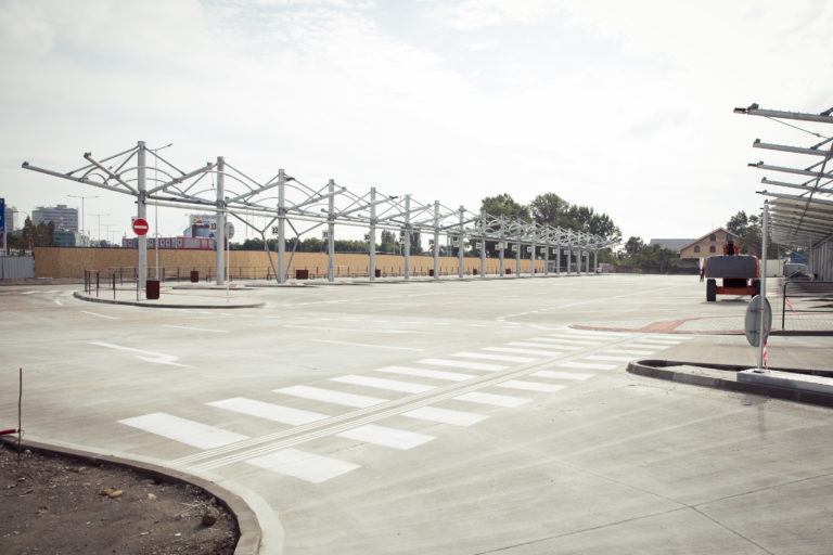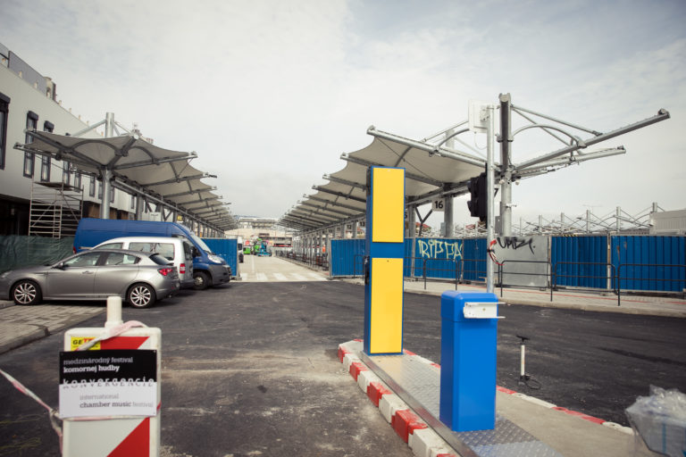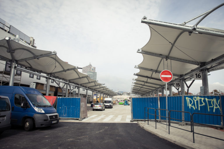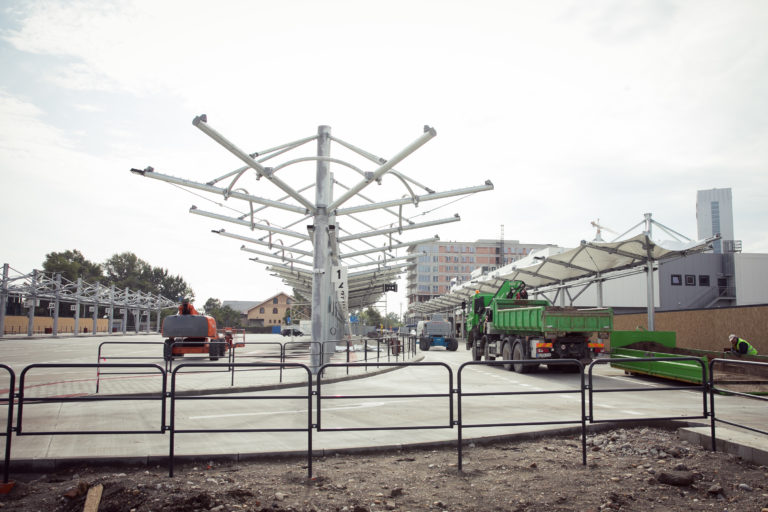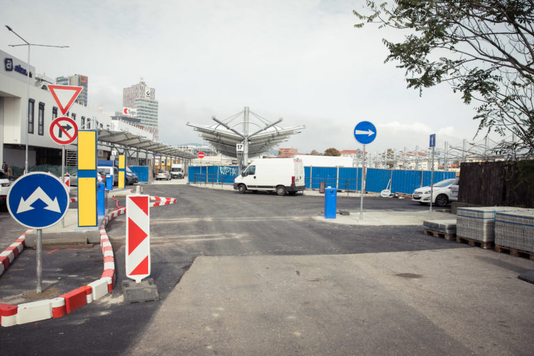 Pohľad na výstavbu dočasnej autobusovej stanice na Bottovej ulici. Bratislava, 22. september 2017 Foto: SITA/Diana Černáková