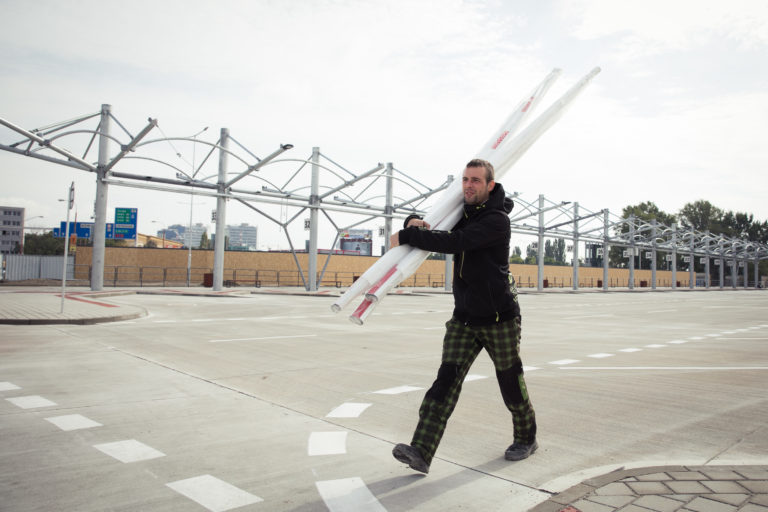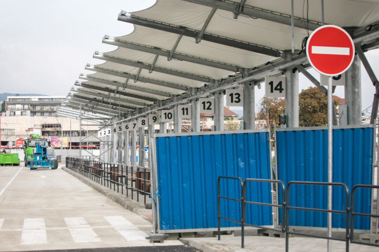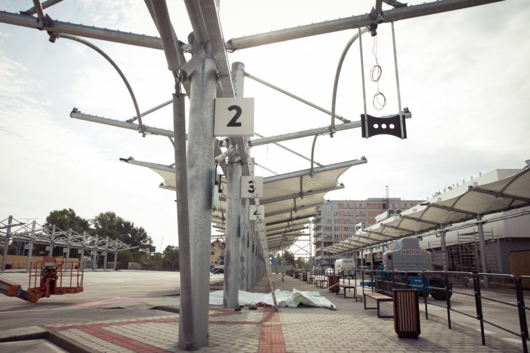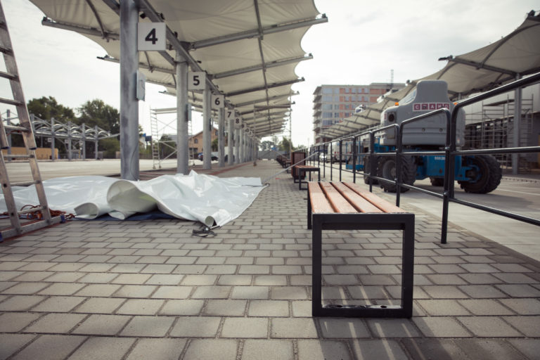 Pohľad na výstavbu dočasnej autobusovej stanice na Bottovej ulici. Bratislava, 22. september 2017 Foto: SITA/ Diana Černákova