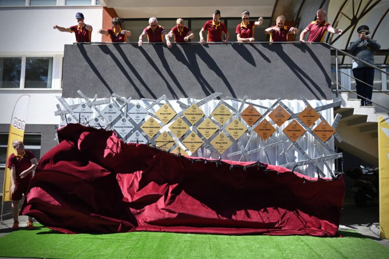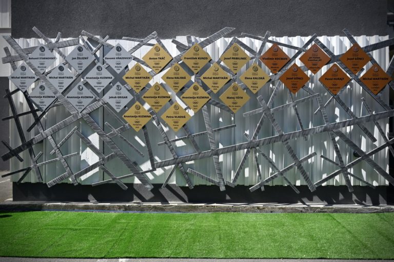 Stena olympijskych medailistov počas odhalenia v rámci Dňa otvorených dverí vo Vojenskom športovom centre Dukla Banská Bystrica. Banská Bystrica, 1. máj 2024. Foto: SITA/Jakub Julény