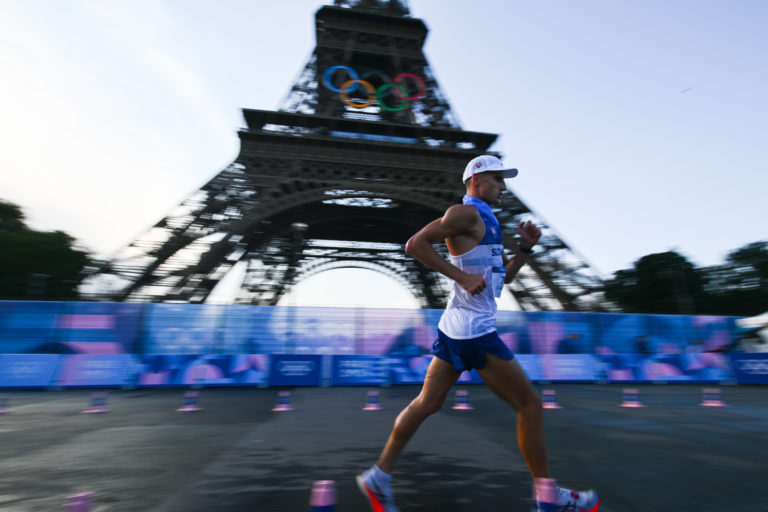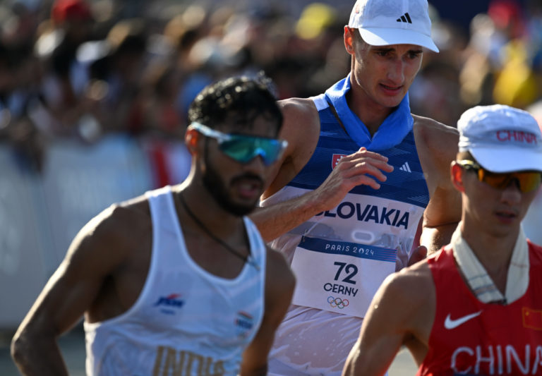 Slovenský atlét Dominik Černý počas pretekov na 20 km chôdza muži v rámci XXXIII. letných olympijských hier 2024 v Paríži. Paríž, 1. august 2024. Foto: SITA/Martin Medňanský