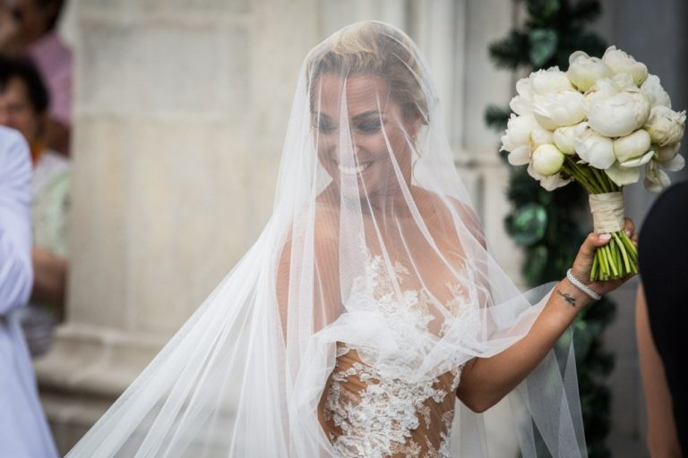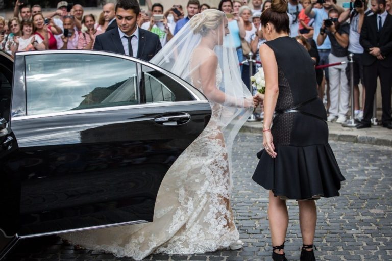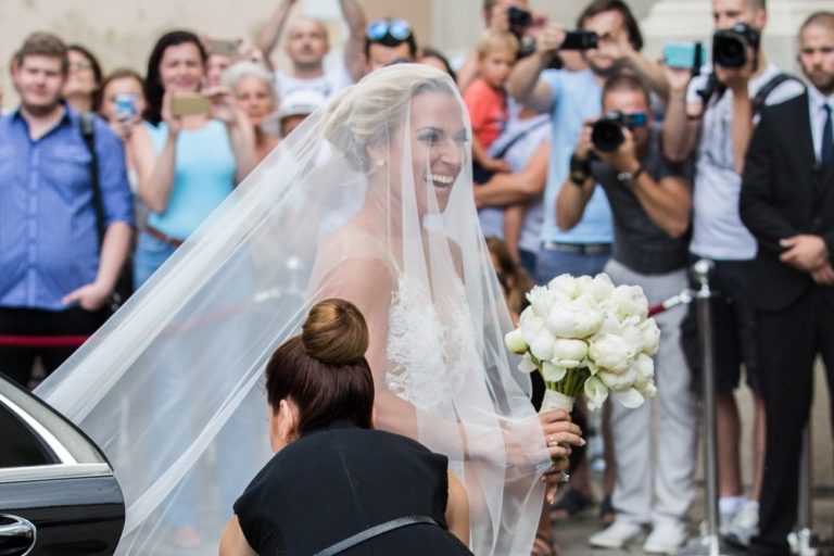 Tenistka Dominika Cibulková prichádza na svadobný obrad do Dómu svätého Martina. Bratislava, 9. júl 2016. Foto: SITA/Marko Erd