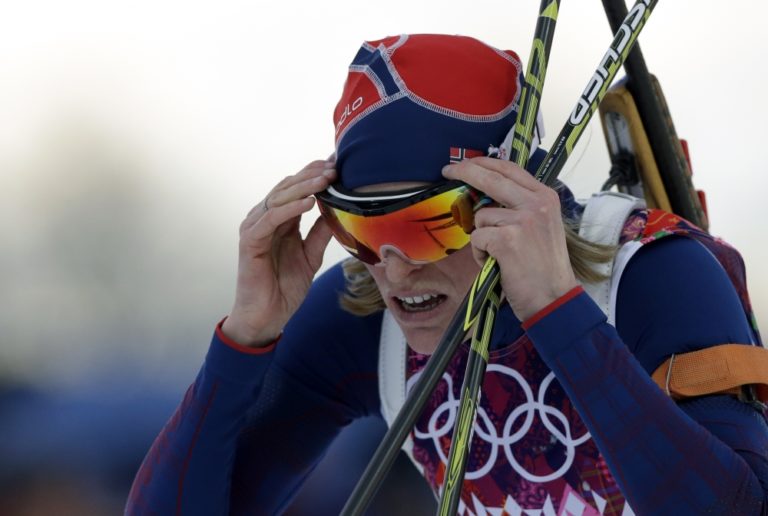 Nórska biatlonistka Tora Bergerová počas vytrvalostných pretekov žien na 15 km. Rusko, Soči, 14. februára 2014. Foto: SITA/AP