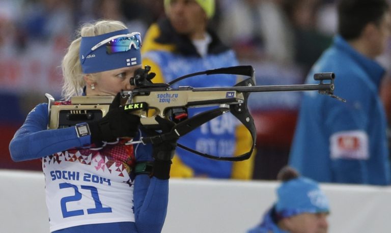Fínska biatlonistka Kaisa Makarainenová počas vytrvalostných pretekov žien na 15 km. Rusko, Soči, 14. februára 2014. Foto: SITA/AP