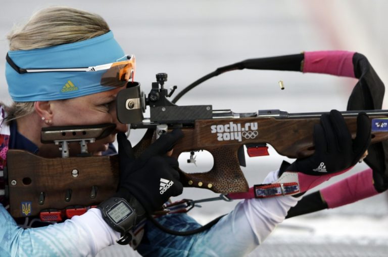 Ukrajinská biatlonistka Vaľj Semerenková počas vytrvalostných pretekov žien na 15 km. Rusko, Soči, 14. februára 2014. Foto: SITA/AP