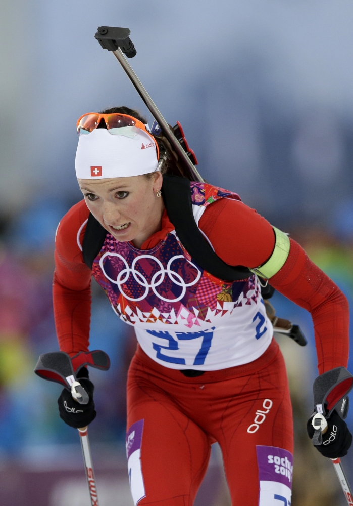 Švajčiarska biatlonistka Selina Gasparinová počas vytrvalostných pretekov žien na 15 km. Rusko, Soči, 14. februára 2014. Foto: SITA/AP