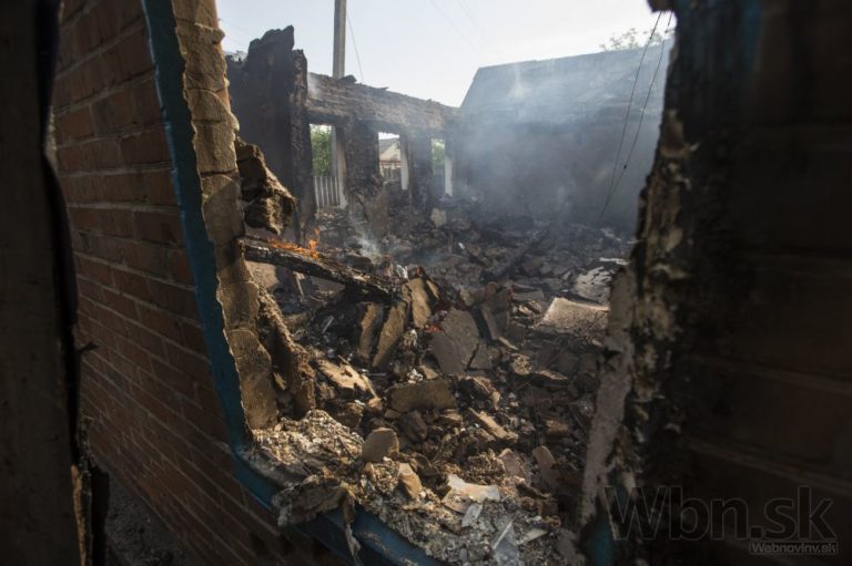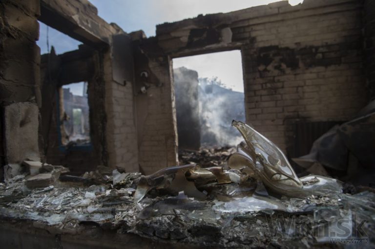 Mínometom zničený dom v Luhanskej oblasti. Pri ozbrojených stretoch neďaleko Donecku prišlo o život až sedemnásť ukrajinských vojakov. Mnohí ďalší utrpeli zranenia. Strety zaznamenali aj v susednej Luhanskej oblasti, obete na životoch však zatiaľ nehlásia. Foto: SITA/AP