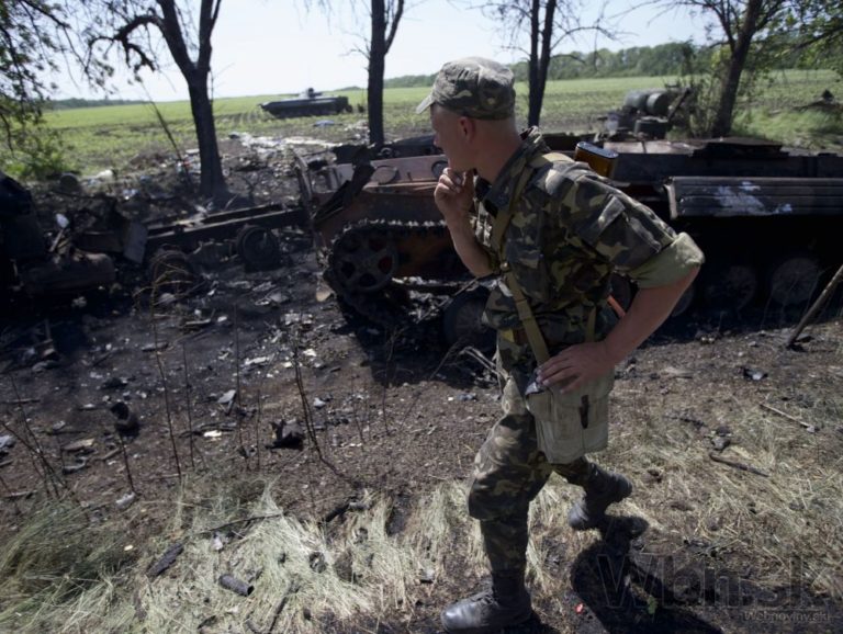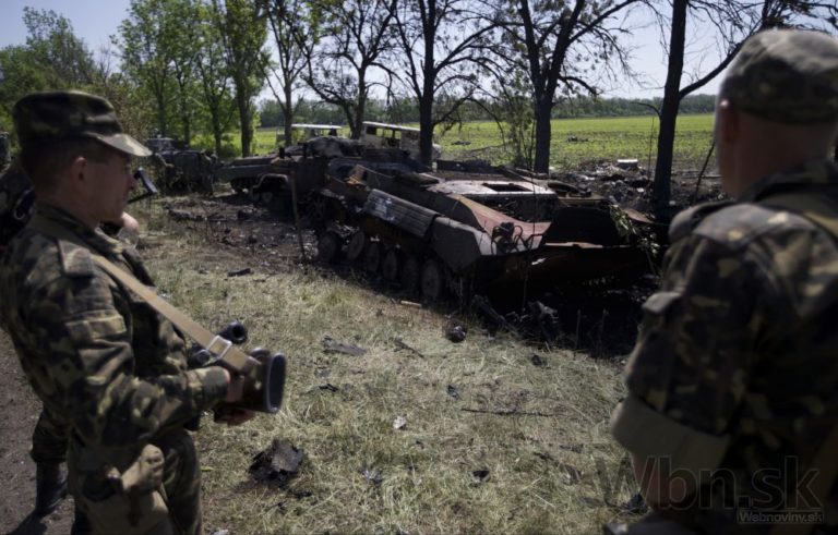 Pri ozbrojených stretoch neďaleko Donecku prišlo o život až sedemnásť ukrajinských vojakov. Mnohí ďalší utrpeli zranenia. Strety zaznamenali aj v susednej Luhanskej oblasti, obete na životoch však zatiaľ nehlásia. Foto: SITA/AP