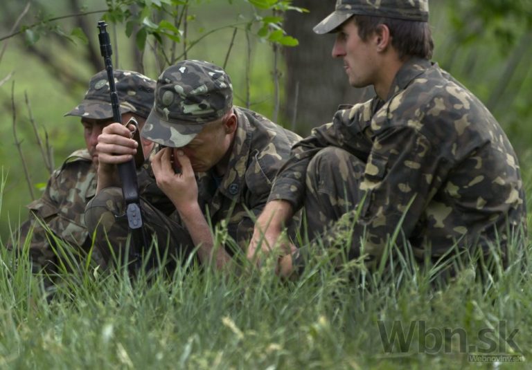 Ukrajinskí vojaci v dedine Blahodatne na východe Ukrajiny. Pri ozbrojených stretoch neďaleko Donecku prišlo o život až sedemnásť ukrajinských vojakov. Mnohí ďalší utrpeli zranenia. Strety zaznamenali aj v susednej Luhanskej oblasti, obete na životoch však zatiaľ nehlásia. Foto: SITA/AP