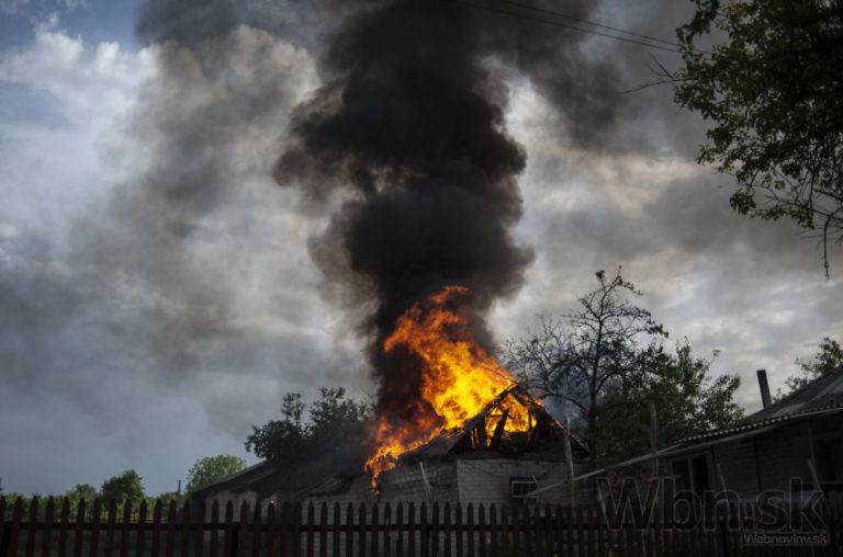 Bombou zničený dom neďaleko Slovjansku. Pri ozbrojených stretoch neďaleko Donecku prišlo o život až sedemnásť ukrajinských vojakov. Mnohí ďalší utrpeli zranenia. Strety zaznamenali aj v susednej Luhanskej oblasti, obete na životoch však zatiaľ nehlásia. Foto: SITA/AP