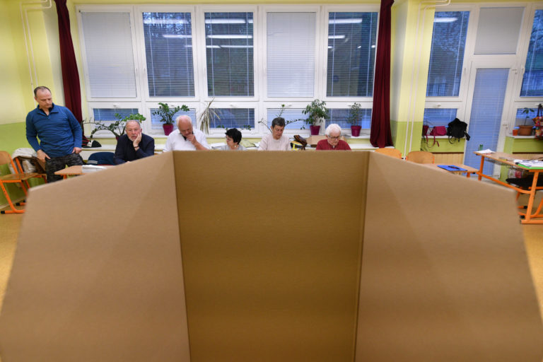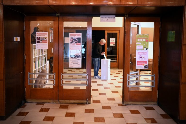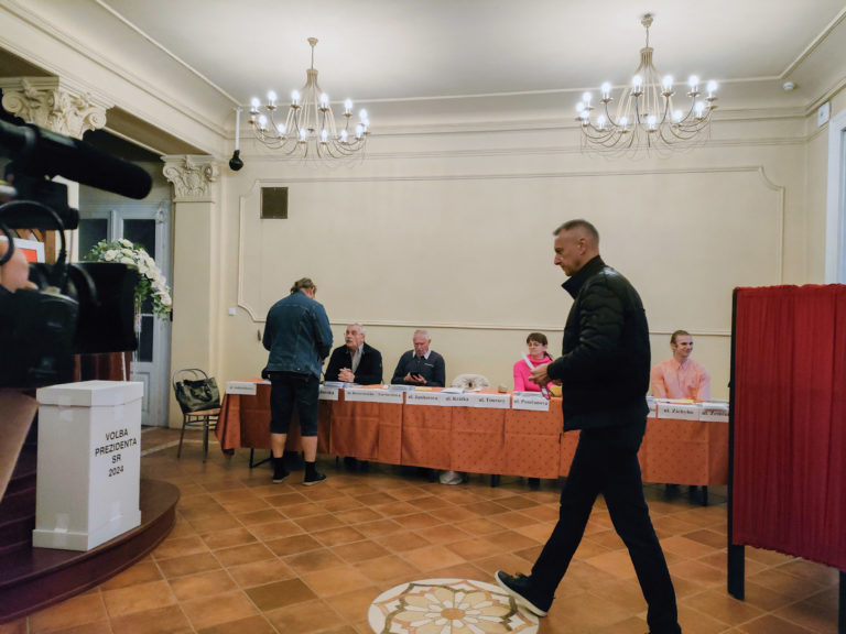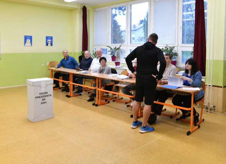 Priebeh 2. kola prezidentských volieb vo volebných okrskoch v obci Ľubotice. Ľubotice, 6. apríl 2024. Foto: SITA/Ivan Kriššák