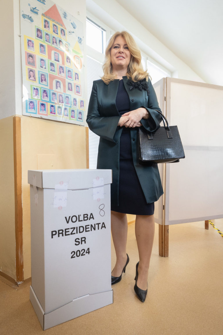 Prezidentka SR Zuzana Čaputová počas volebného aktu v rámci 2. kola prezidentských volieb 2024. Pezinok, 6. apríl 2024. Foto: SITA/Jana Birošová