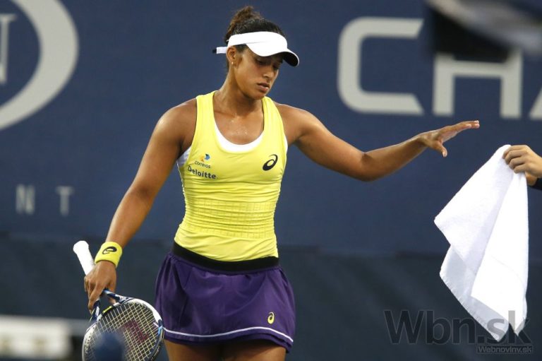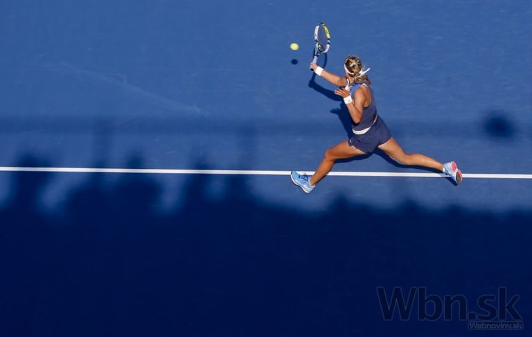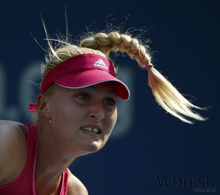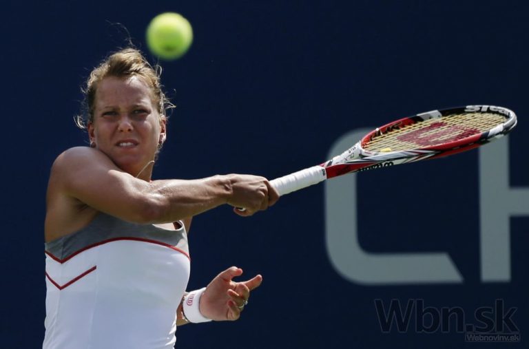 Slovenská tenistka Dominika Cibulková v zápase prvého kola záverečného grandslamového turnaja US Open proti 15-ročnej Catherine Bellisovej, ktorej napokon podľahla. New York, 26. augusta 2014. Foto: SITA/AP