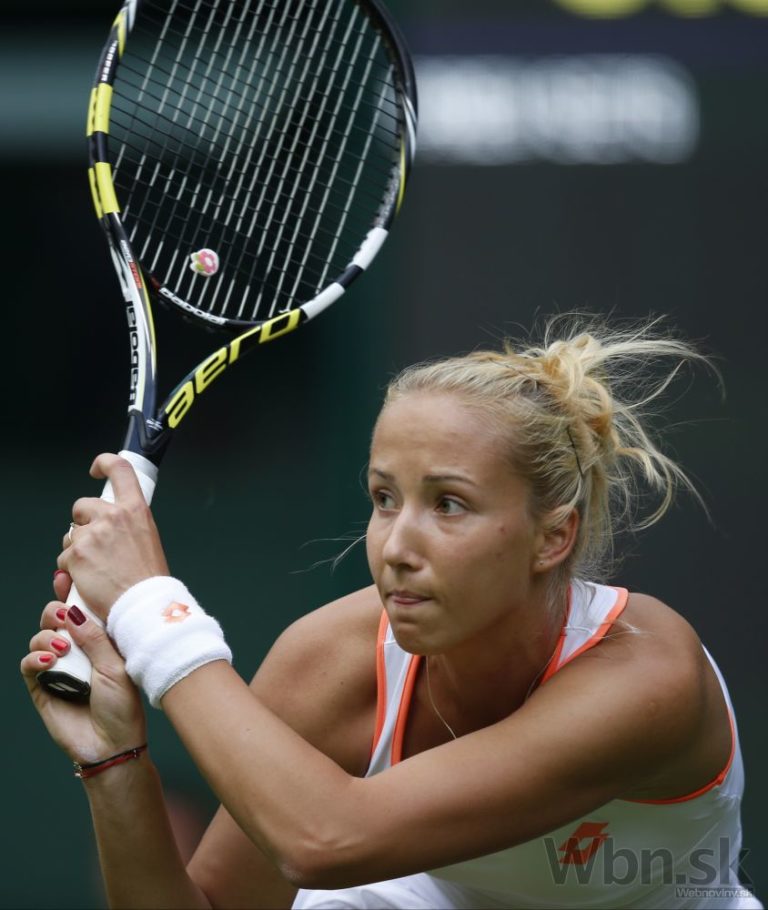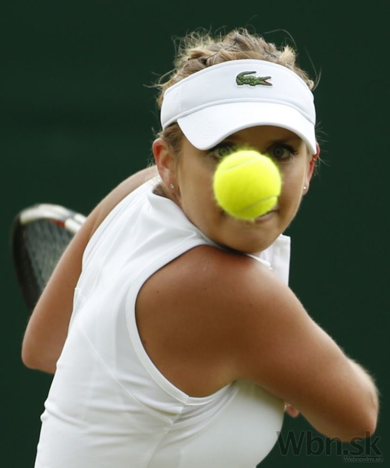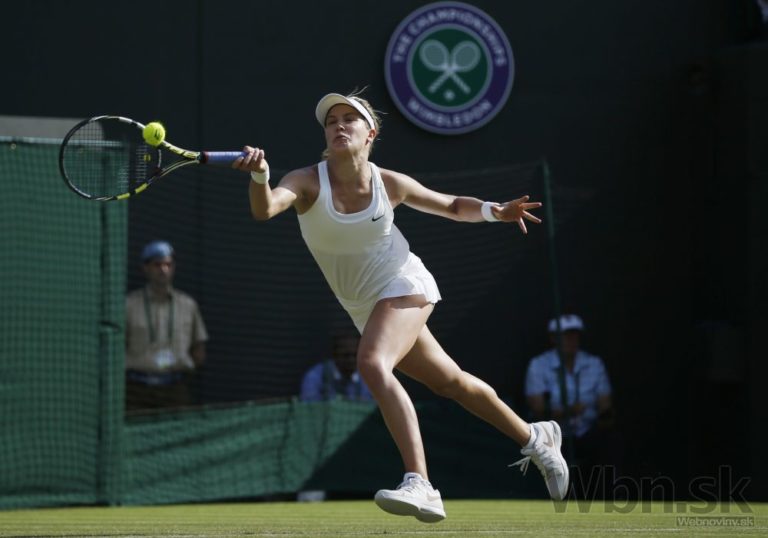 Kanadská tenistka Eugenie Bouchardová počas zápasu 1. kola na Wimbledone, v ktorom porazila Slovenku Danielu Hantuchovú 7:5, 7:5. Foto: SITA/AP