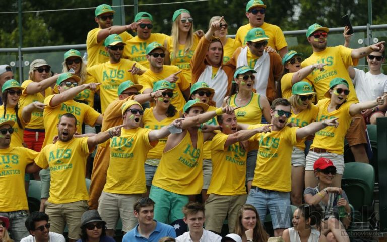 Fanúšikovia austrálskeho tenistu Lleytona Hewitta počas prvého kola na Wimbledone. Foto: SITA/AP