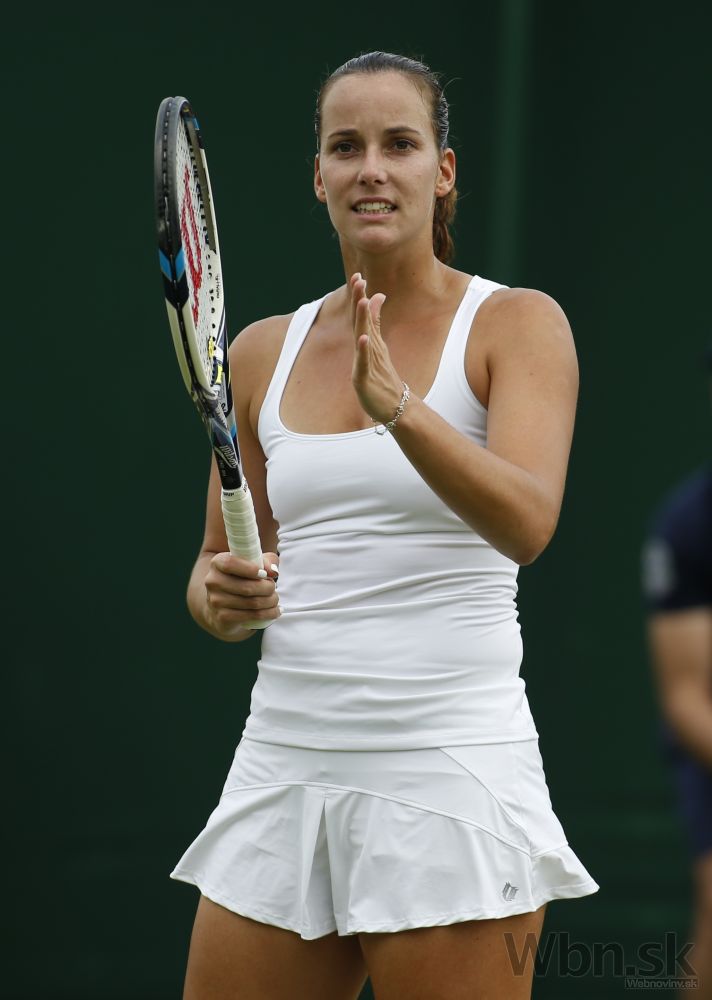 Tenistka Jarmila Gajdošová počas zápasu so Stefanie Voegelovou v prvom kole na Wimbledone. Foto: SITA/AP