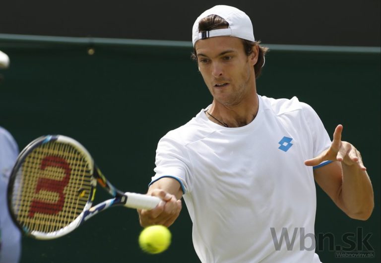 Joao Sousa počas zápasu prvého kola na Wimbledone, v ktorom prehral so Stanom Wawrinkom za 95 minút 6:3, 6:4, 6:3. Foto: SITA/AP