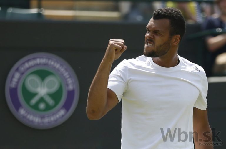 Francúz Jo-Wilfried Tsonga sa teší z víťazstva nad Rakúšanom Juergenom Melzerom počas prvého kola na Wimbledone. Foto: SITA/AP