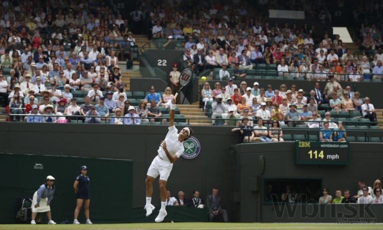 Švajčiarsky tenista Roger Federer počas zápasu 1. kola na Wimbledone, v ktorom bez väčších problémov porazil Taliana Paola Lorenziho 6:1, 6:1, 6:3. Foto: SITA/AP