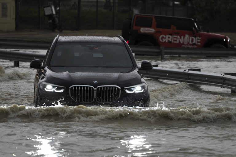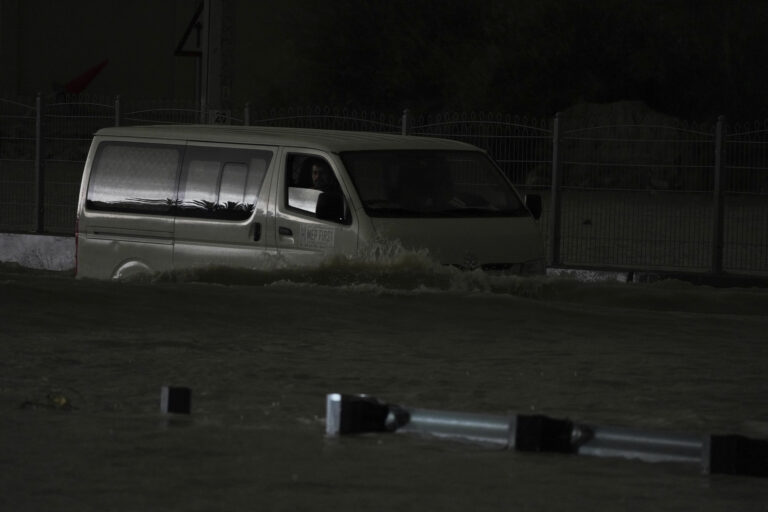Spojenými arabskými emirátmi sa prehnali sprudké dažde a viaceré časti Dubaja sa ocitli pod vodou. Zaplavené sú úseky viacerých diaľnic, ulice a tiež medzinárodné letisko. Dubaj, 17. apríl 2024. Foto: SITA/AP.