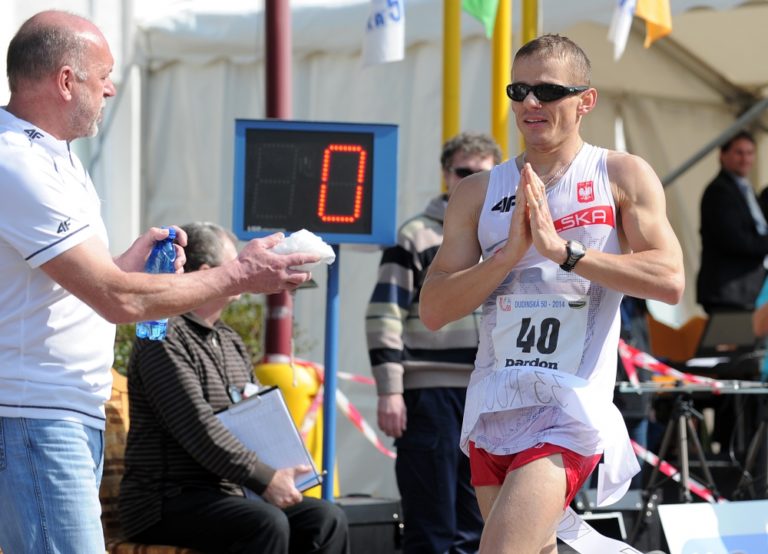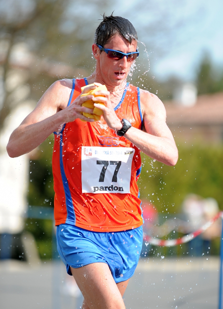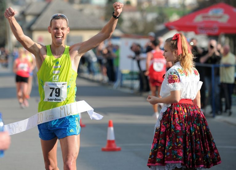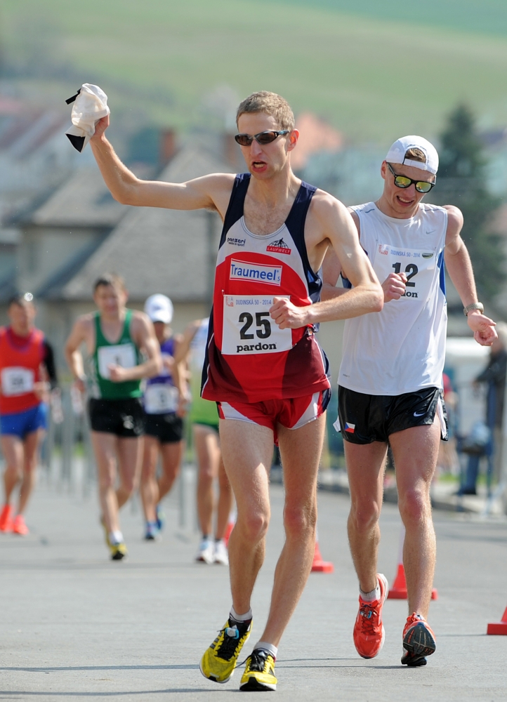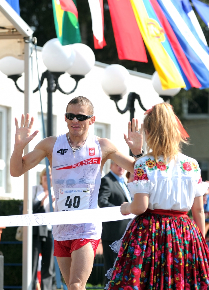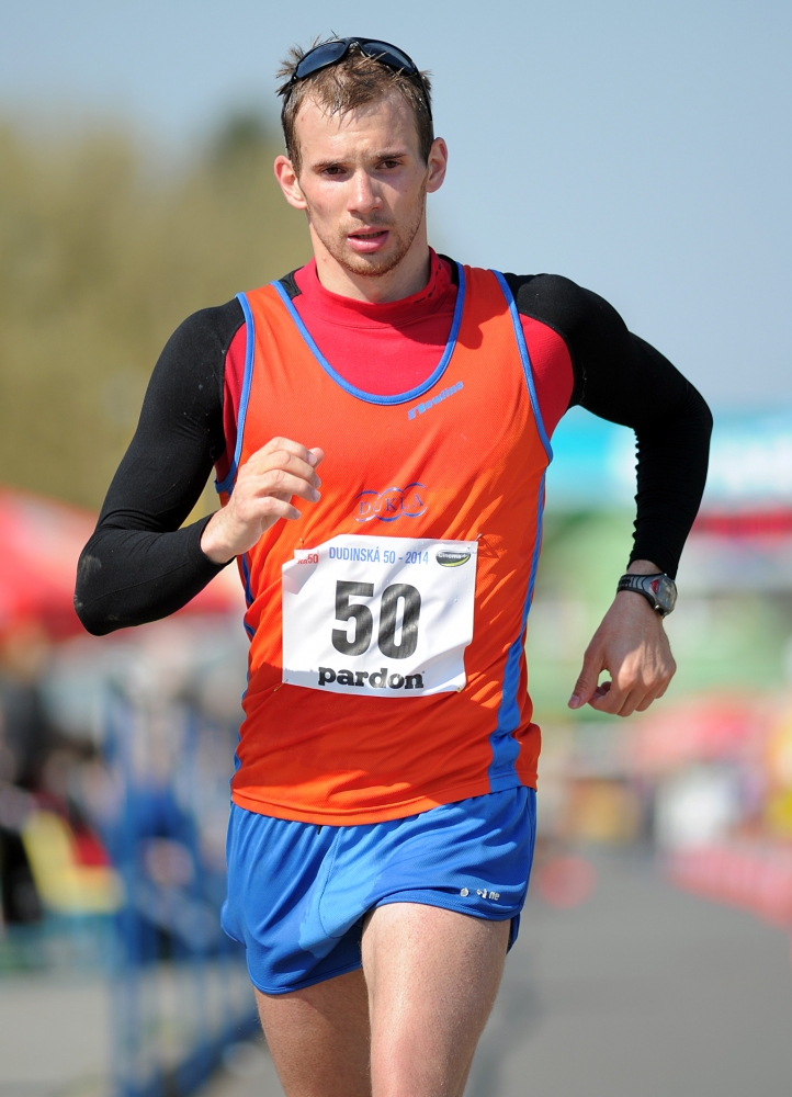 Rafal Augustyn z Poľska, víťaz 33. ročníka Dudinskej päťdesiatky v chôdzi.Dudince, 22. marec 2014. Foto: SITA/Martin Havran