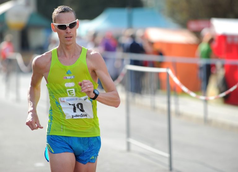 Anton Kučmín zo Slovenska počas pretekov na 20 km v chôdzi v rámci 33. ročníka Dudinskej päťdesiatky v chôdzi. Dudince, 22. marec 2014. Foto: SITA/Martin Havran