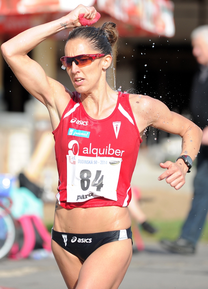 Ainhoa Pinedo zo Španielska, víťazka v kategórii ženy pretekov na 20 km v chôdzi, počas 33. ročníka Dudinskej päťdesiatky v chôdzi. Dudince, 22. marec 2014. Foto: SITA/Martin Havran