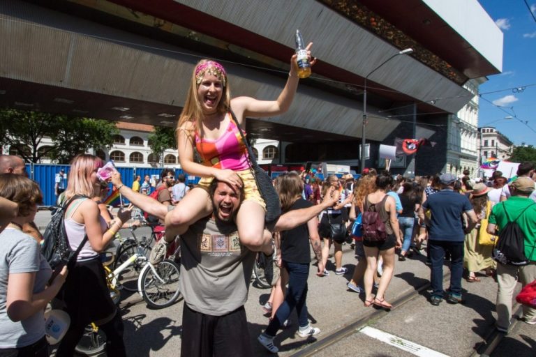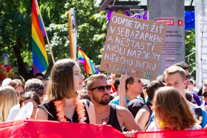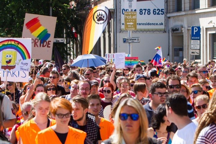 Atmosféra 6. ročníka pochodu Dúhový PRIDE Bratislava 2016, ktorý organizujú LGBTI združenia Queer Leaders Forum, Iniciatíva Inakosť a Nomantinels. Bratislava, 30. júl 2016. Foto: SITA/Ľudovít Vaniher